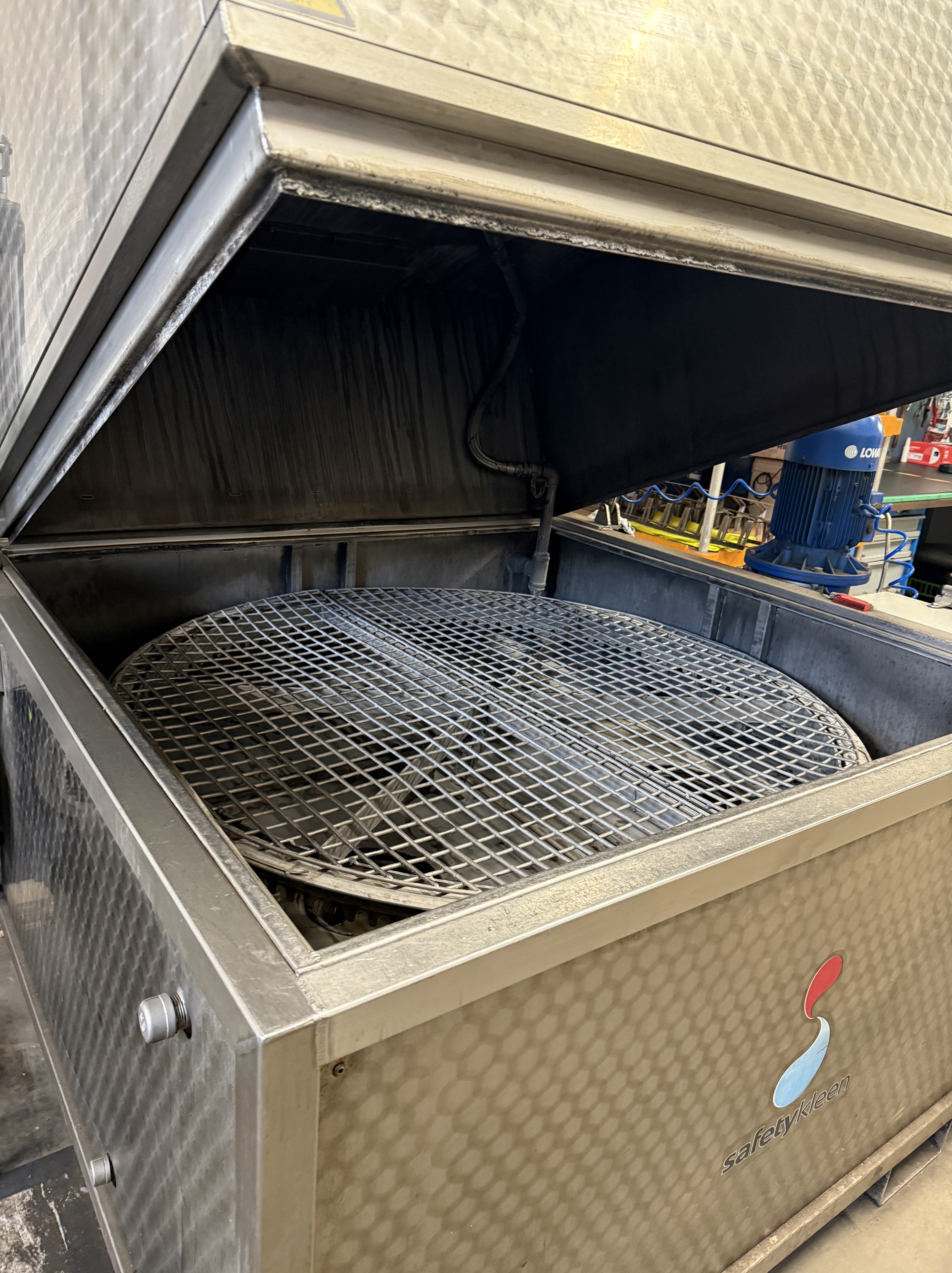 Zajišťujeme strojové mytí výrobních materiálů. Používáme rotační mycí zařízení s průměrem koše 125 cm a pracovní výškou 60 cm s nosností 640 kg.